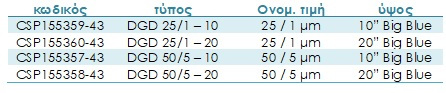 Η σειρά DGD αποτελεί μία μοναδική καινοτομία της Pentair για τη διήθηση αιωρούμενων σωματιδίων. Τα φυσίγγια αυτά είναι κατασκευασμένα από δύο επίπεδα πολυπροπυλενίου διαφορετικής ονομαστικής τιμής διήθησης. Το εξωτερικό επίπεδο είναι περισσότερα micron από το εσωτερικό ώστε να συγκρατεί τον μεγάλο όγκο σωματιδίων και να επιτρέπει στο εσωτερικό να έχει καλύτερα αποτελέσματα.