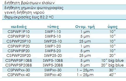 Αποτελούν την οικονομικότερη επιλογή της Pentair Water. Η σειρά P είναι κατασκευασμένη από θερμικά ενωμένες ίνες πολυπροπυλενίου και προσφέρει ικανοποιητική βασική διήθηση του νερού για πλήθος εφαρμογών. Τα φυσίγγια δε διαθέτουν πυρήνα, έχουν ικανοποιητική χημική συμβατότητα και θερμοκρασίες λειτουργίας έως 62,8 οC.